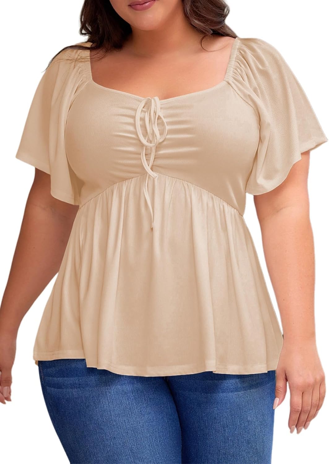 Eytino Plus Size Tops for Women Sweetheart Neck Short Sleeve Peplum Blouse Summer Loose Babydoll Shirts(1X-5X)