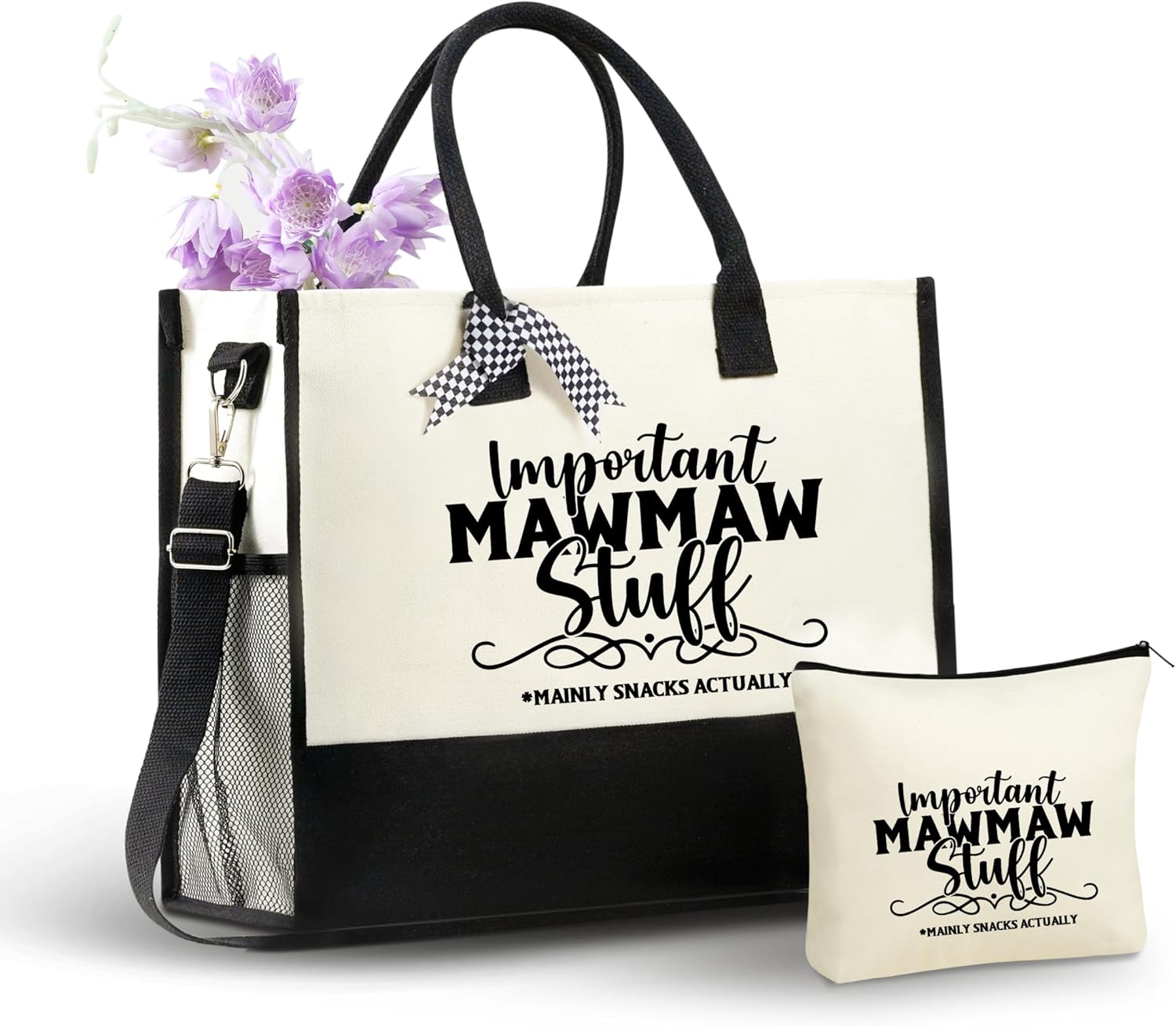 InnoBeta Mawmaw Gifts Canvas Tote Bag, Important Mawmaw Stuff Bag with Top Zipper Closure and Shoulder Strap for Birthday, Mother's Day, Christmas