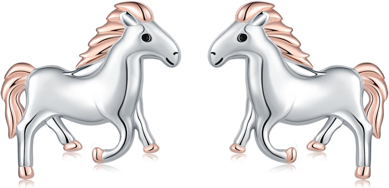 925 Sterling Silver Lucky Horse Earrings Cute Animal Stud Earrings Adorable Horse Jewelry Gift