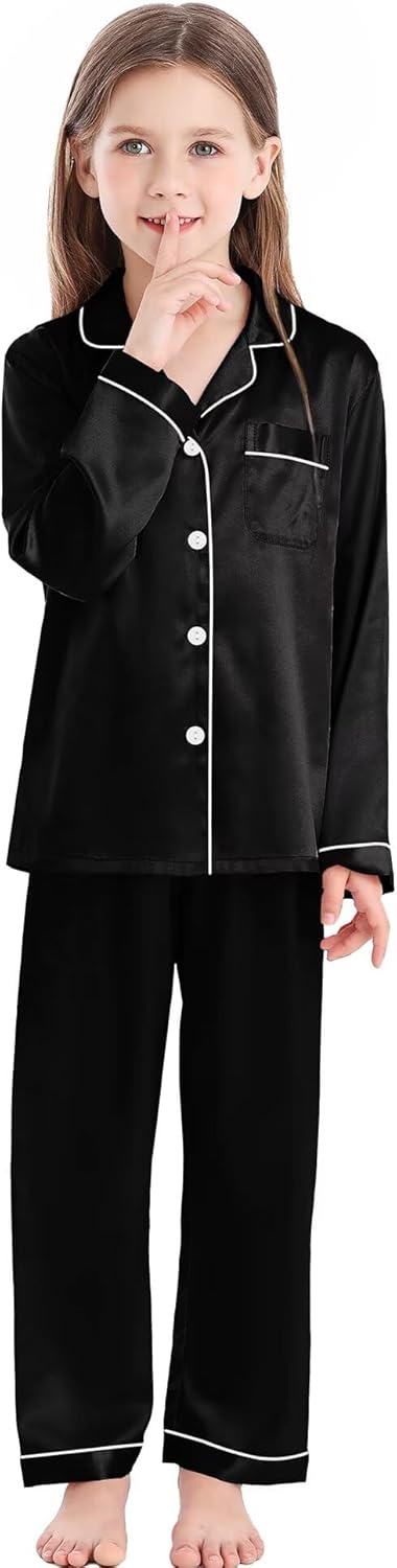 SWOMOG Kid Girls Boys Silk Satin Pajamas Set Button-Down PJs Sets Two-Piece Lounge Sets Long Sleeve Sleepwear