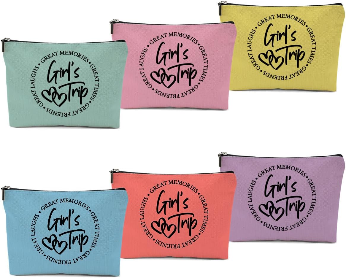 6 Pcs Girls Trip Gifts Favors, Girls Weekend Gifts Makeup Bag, Bestie Gifts Weekend Bag Travel Gifts Vacation Cosmetic Bag, Friendship Gifts for Women Friend, Graduation Wedding Gifts Toiletry Bag