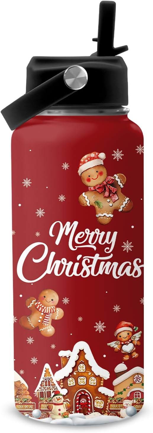 - 【Merry Christmas Gift】This 32oz red stainless-steel tumbler with straw is a festive treat for the winter season. Adorned with playful gingerbread men against a cheerful scarlet backdrop, it adds instant holiday spirit to every sip. Lightweight, leak-proof, and cup-holder friendly, it’s perfect for Christmas morning cocoa, cozy movie marathons, or last-minute shopping runs
