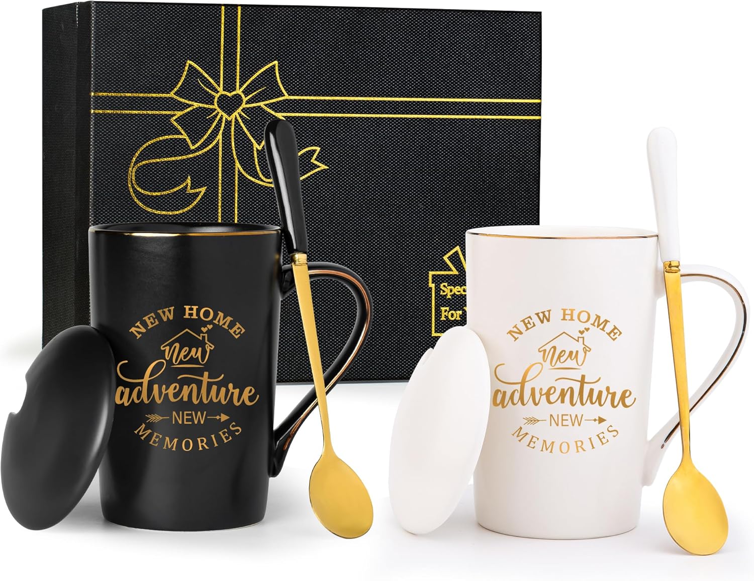House Warming Gifts, Closing Gifts for Home Buyers, House Warming Gift for Women Men Couples Newlywed Friends, New Home New Adventure Coffee Mugs Set, 14 Oz