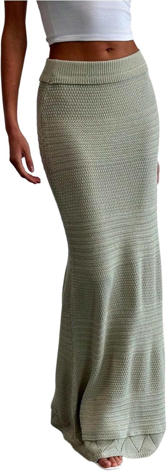SOLY HUX Women's Maxi Skirt Elastic Low Rise Knitted Bodycon Summer Vacation Long Skirts