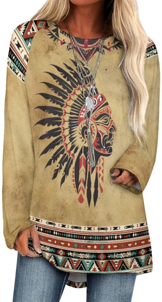 Long Sleeve Shirts for Women Aztec Pullover TopsAmerican Clothing Fall Comfy Fashion Boho Tops for Women