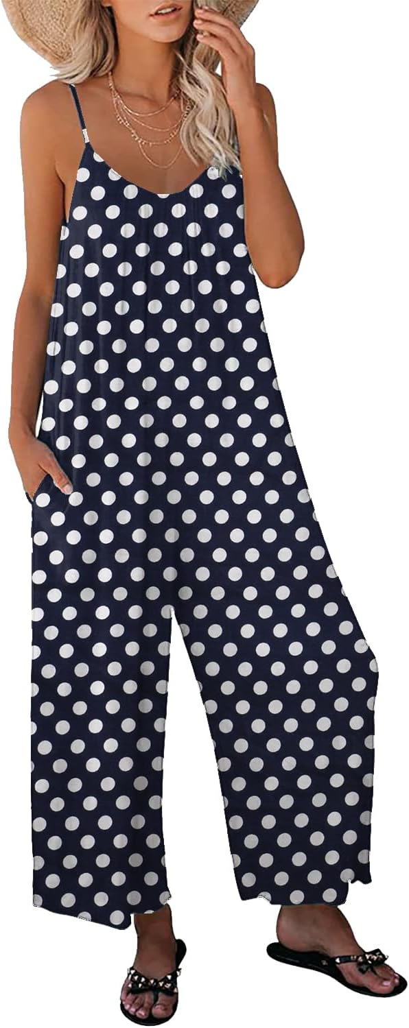 Womens Casual Loose Floral Bohemian Summer Jumpsuits Plus Size Beach Rompers One Piece Outfits with Pockets