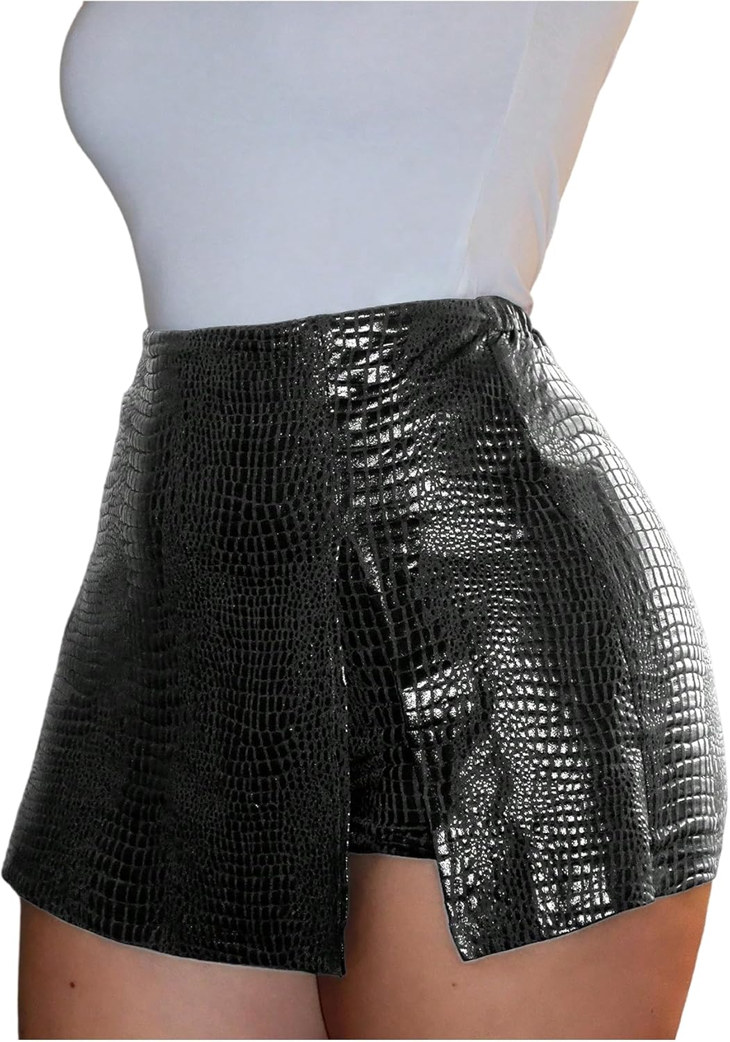 Floerns Women's Y2k Leather Skorts High Waisted Asymmetrical Hem Club Mini Skirt Shorts