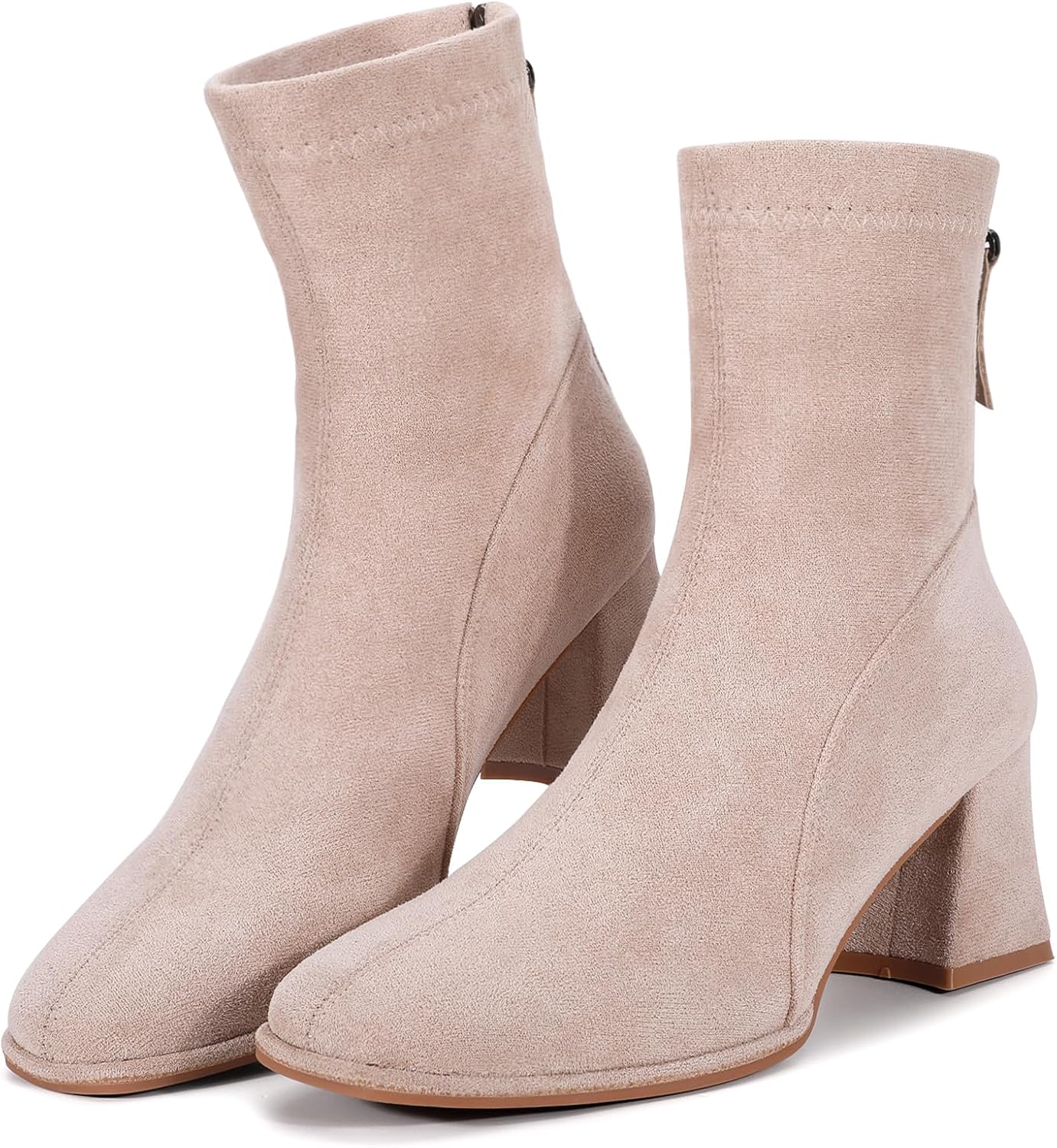 Trakxy Women's Square Toe Ankle Boots Faux Suede Low Block Heel Chelsea Boots Women Shoes