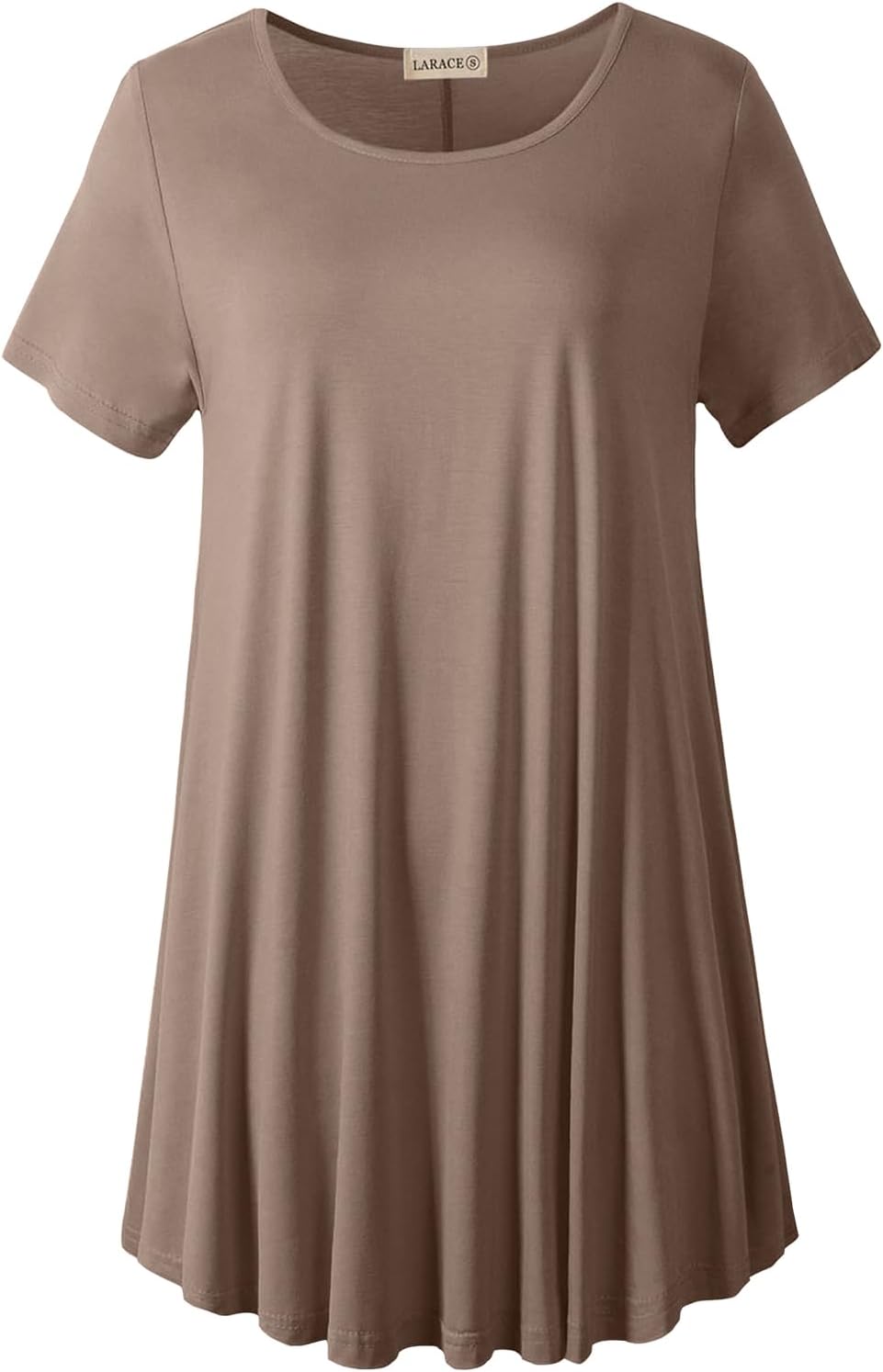 LARACE Plus Size Tops for Women Short Sleeve Shirts Casual Summer Clothes Round Neck Tunics for Leggings