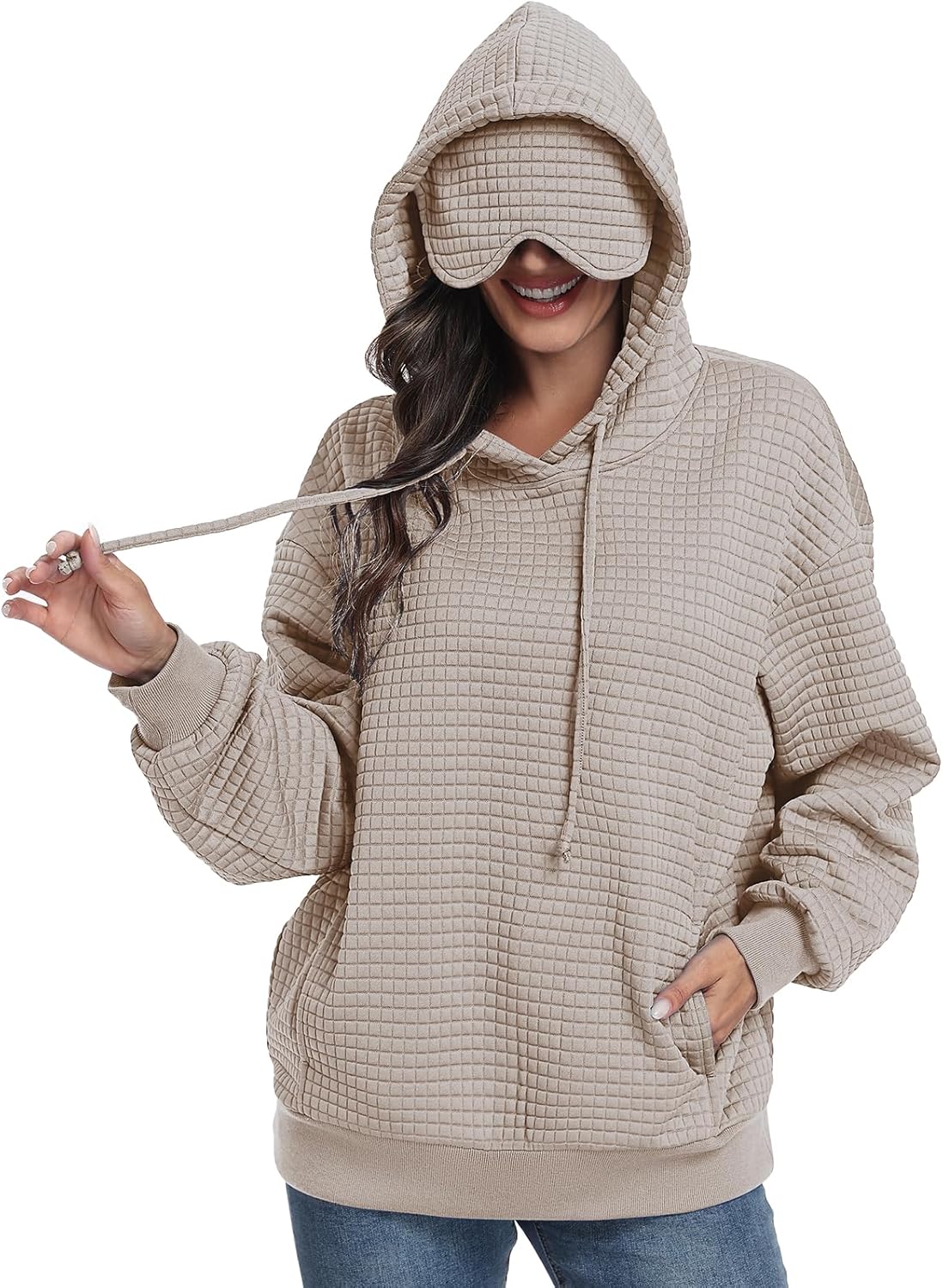 SeSe Code Hoodie With Eye Mask Waffle Hooded Sweatshirts Womens Travel Airplane Sleep Hoodies Mens Oversized Pullover