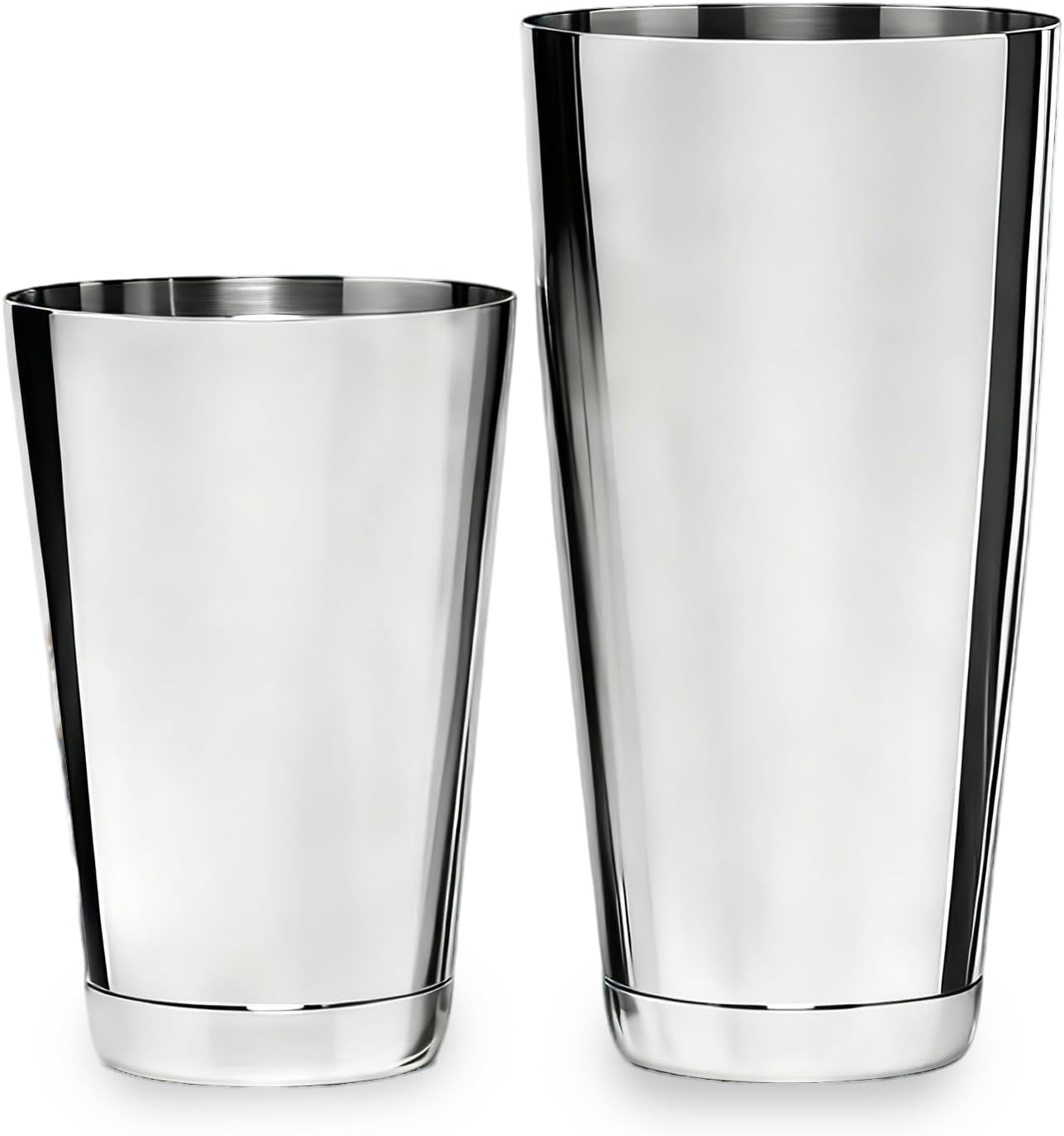 - Pro-Grade 18/8 Stainless Steel - Crafted with durable, rust-proof stainless steel that won’t dent or retain odors. Designed with a meticulous two-piece construction, this Boston shaker set includes a 28 ounce large tin and an 18 ounce small tin, allowing for precise mixing and shaking of your favorite classic craft cocktails, beverages, and spirits