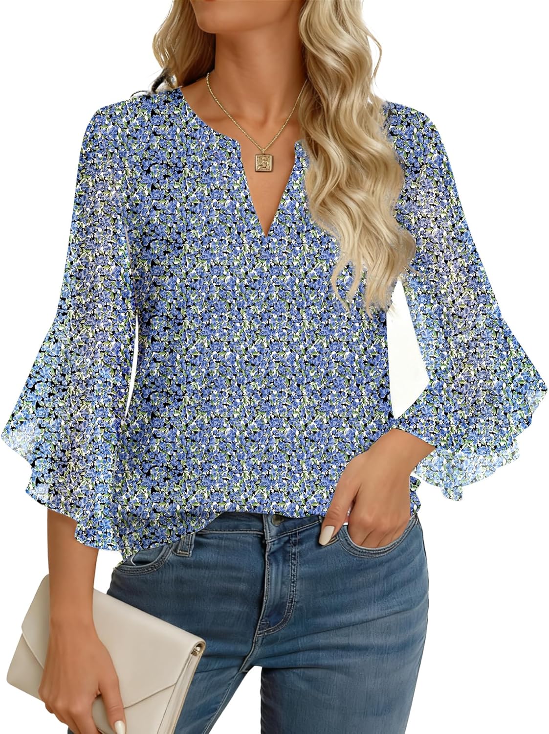 Womens 3/4 Sleeve Tops Dressy Casual Business Work Blouses Office Shirts