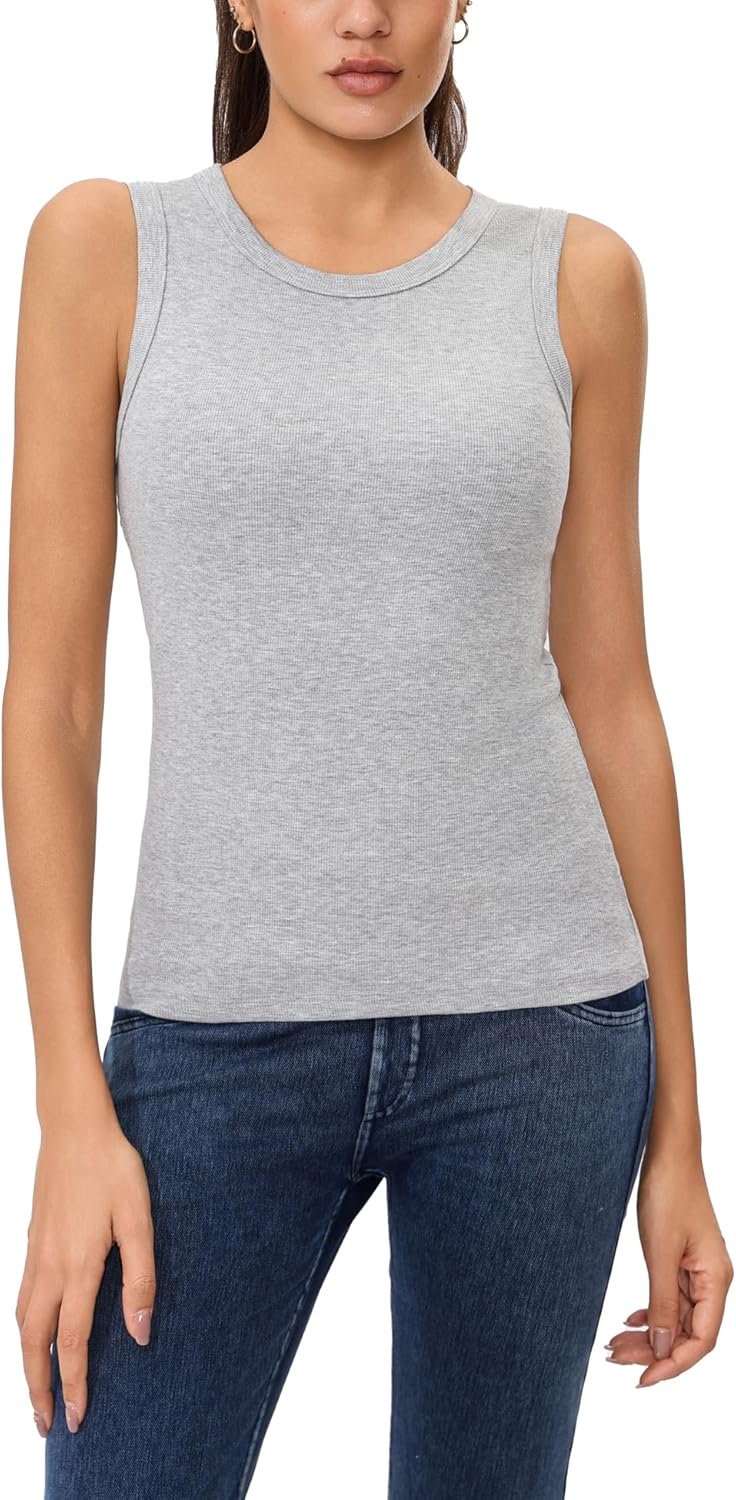 Women's Sleeveless Crewneck Ribbed Tank Top Slim Fit Racerback Summer Basic Shirt