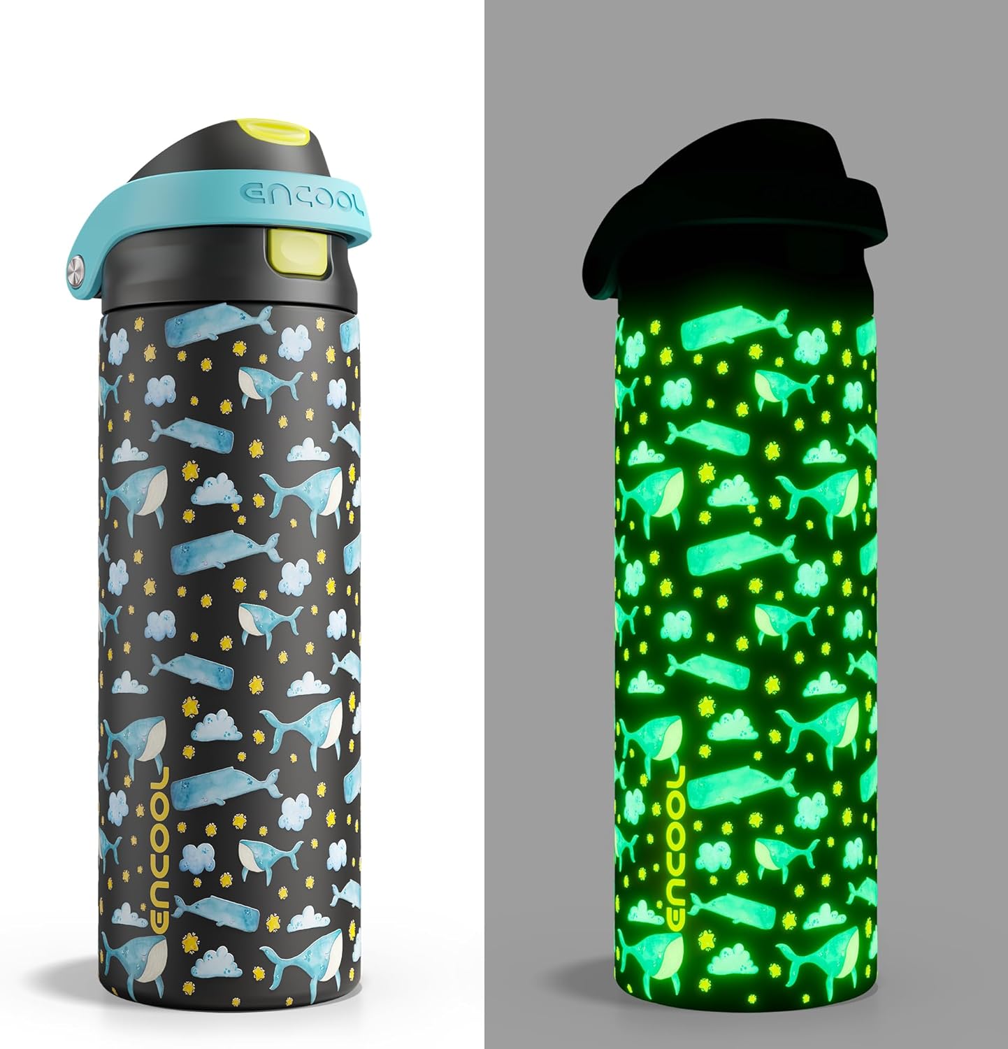 ENCOOL Leakproof Insulated Water Bottle with Straw Dual-Sip Water Bottle Bag-Safe Design for Work, Commute & Gym – Keeps Drinks Cold All Day, 24 oz, Sky Whale