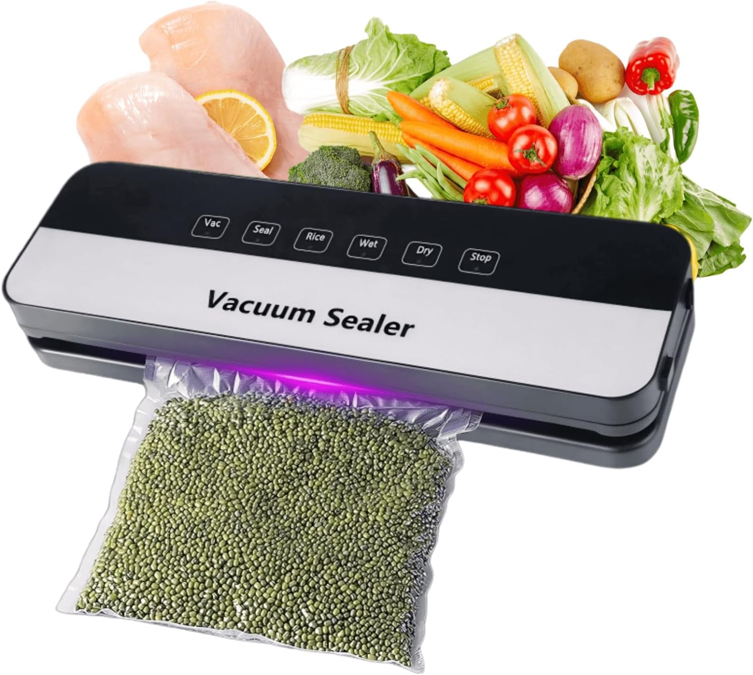 - 【6-in-1 Food Sealer】The multifunctional vacuum sealing device provides Dry/Wet/Vac/Seal/Rice modes,Dry wet mode maximizes the freshness of different types of food,Vac one click operation,Seal limited to quick sealing only,Stop Cancel the current process at any time