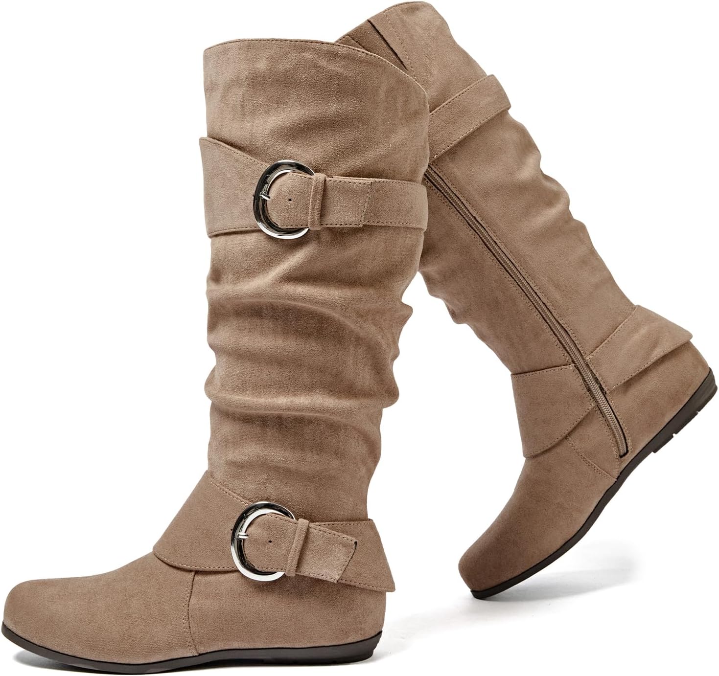 Luoika Women's Extra Wide Calf Knee High Slouchy Boots, Wide Width Tall Boots with Flat Heel Side Zipper.