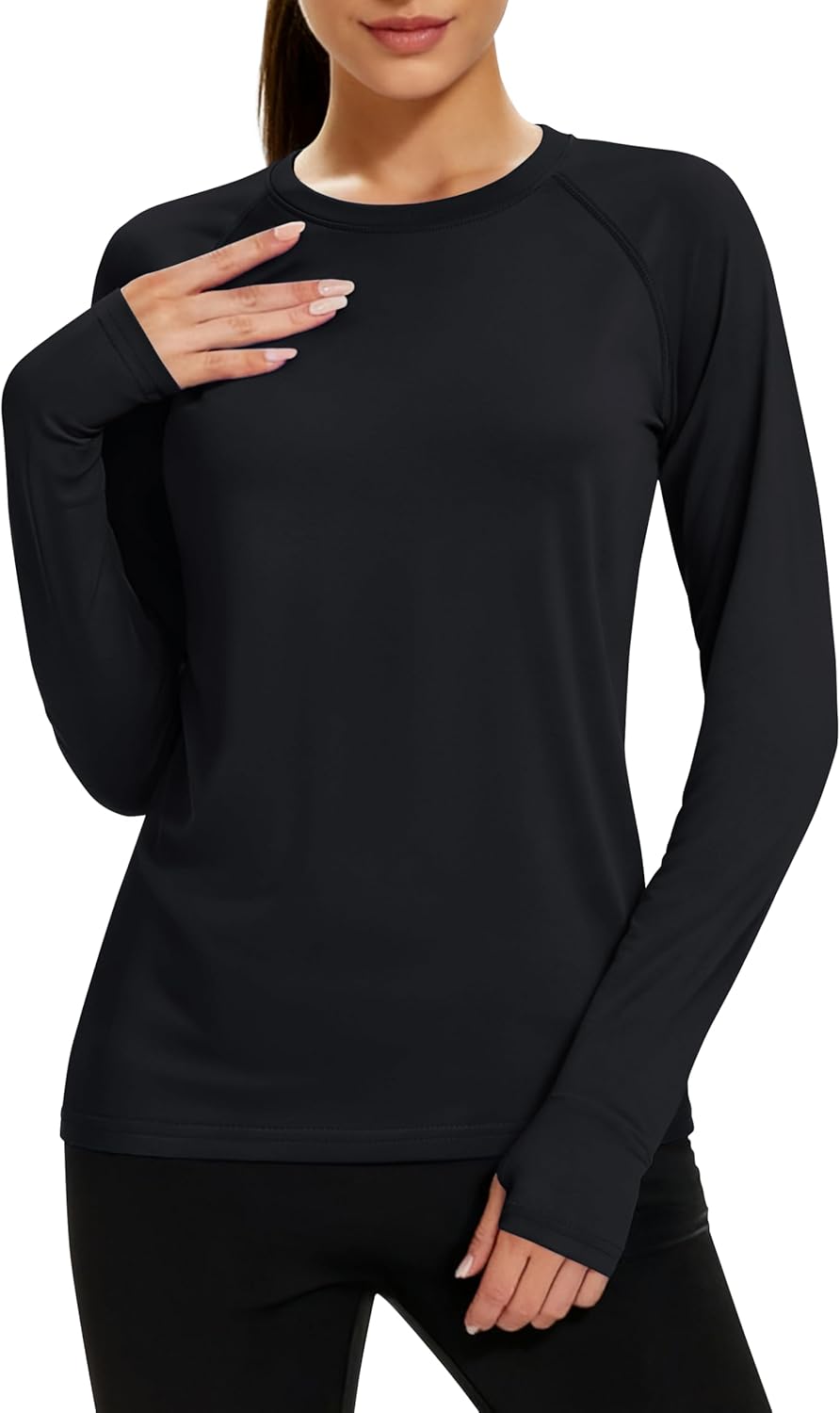 MAGCOMSEN Women's Thermal Shirts Long Sleeve Fleece Lined Workout Tops Athletic Moisture Wicking with Thumb Hole