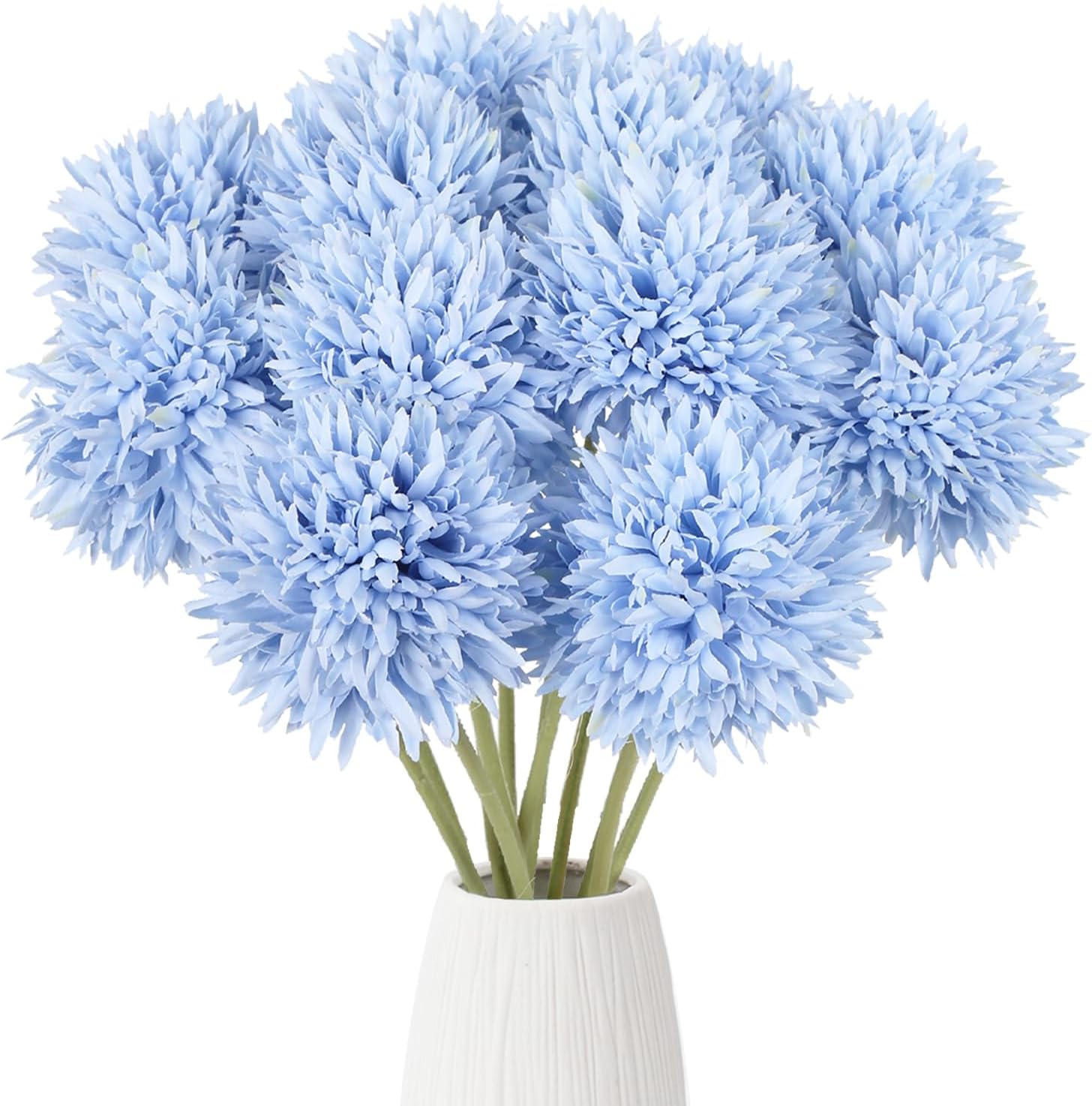 - Size and Packaging: Each package includes 12PCS artificial ball chrysanthemums. The height of each flower is about 17.3inch/44cm, and the diameter of the flower head is about 3.15inch/8cm. The silk flowers with stems can be bent or cut at will to fit any vase or basket