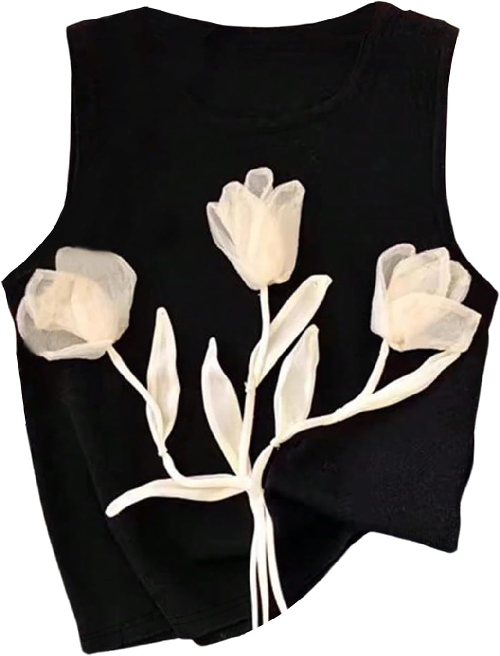 Women's 3D Floral Tank Top Crew Neck Tulip Applique Summer Casual Sleeveless Going Out Tops