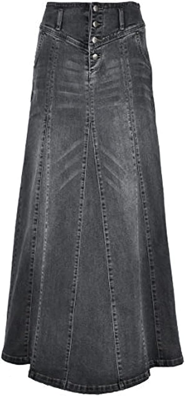 ebossy Women's High Rise Distressed Wash Denim Skirt A Line Swing Maxi Long Jean Skirts