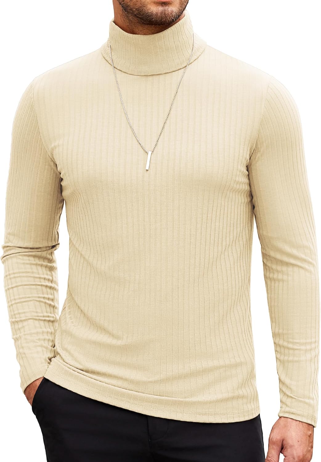 COOFANDY Men's Turtleneck Sweater Slim Fit Lightweight Basic Ribbed Sweaters