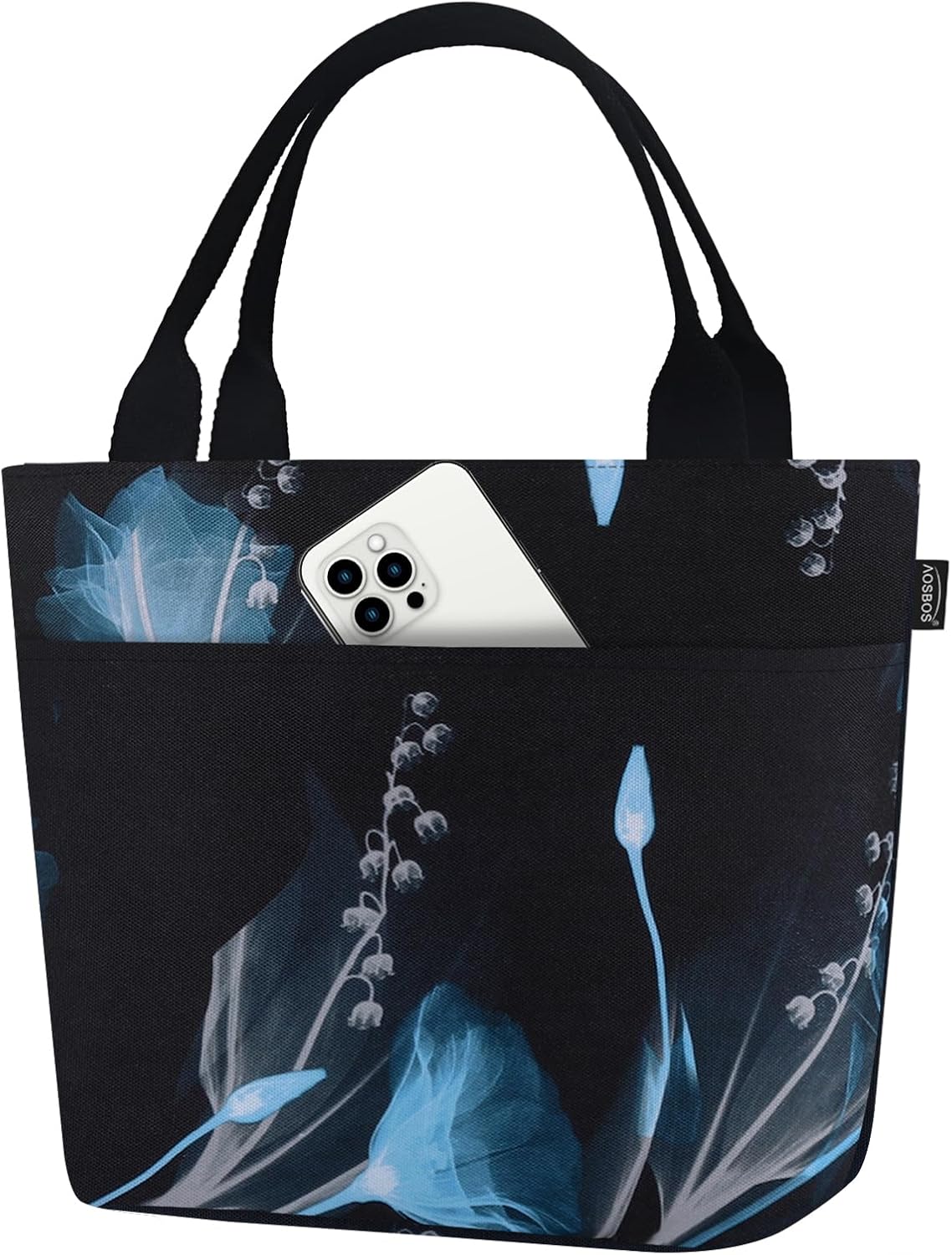 Aosbos Lunch Tote Bag, Insulated Lunch Box for Women, Leakproof Lunch Cooler Purse for Work, Black Dream Flower