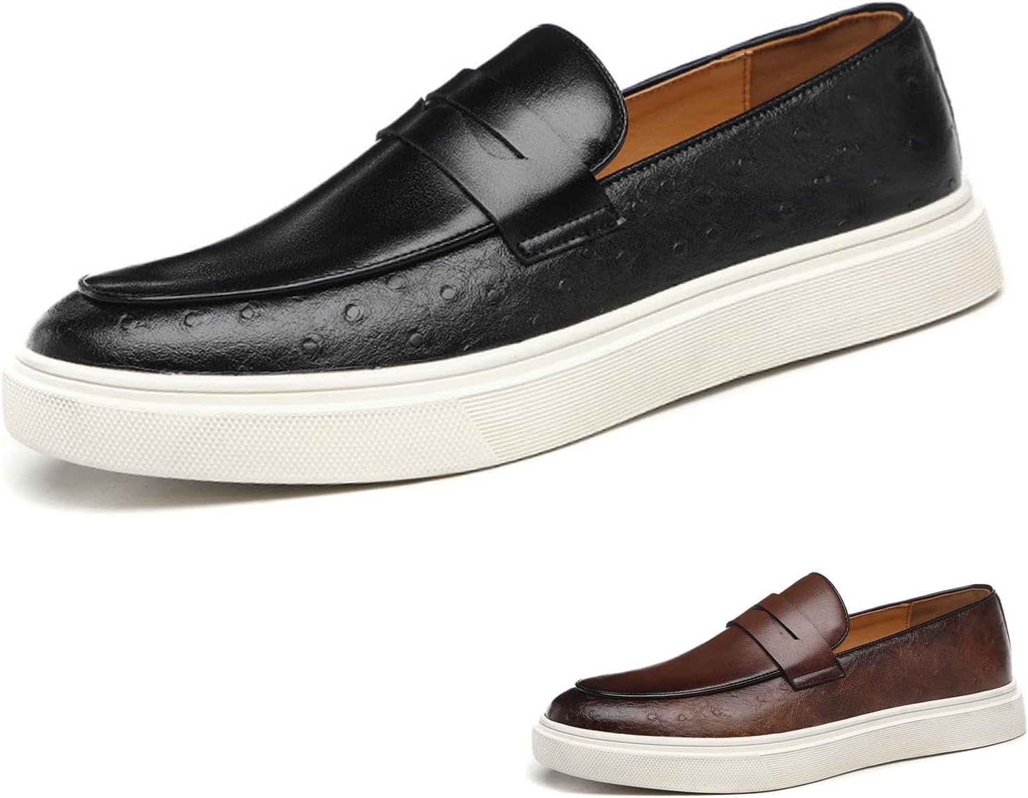 Runscbk Men's Leather Platform Penny Loafers Fashion Round Toe Slip On Tuxedo Dress Shoes for Party Wedding Smoking Shoes