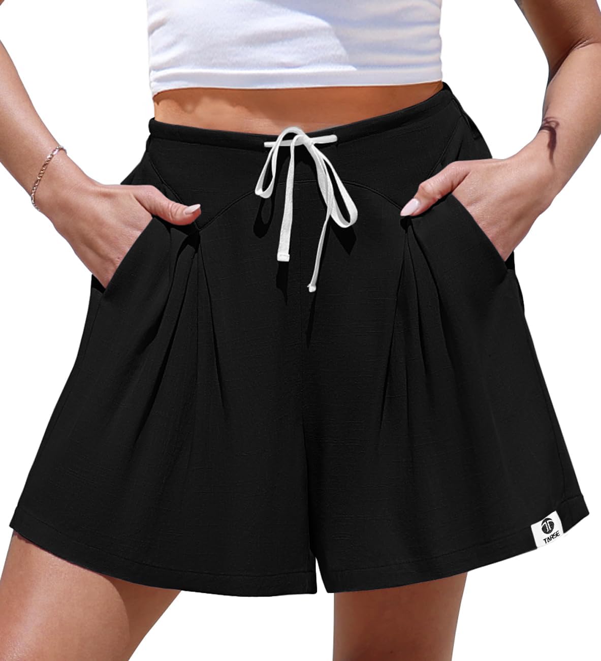 TARSE Womens Linen Casual Shorts Loose Fit Elastic Waist Drawstring Summer Lounge Shorts with Pockets