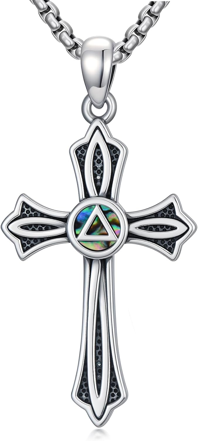 Sobriety Gifts 925 Sterling Silver AA Sobriety Pendant Necklace Alcoholics Anonymous Jewelry Sober Gifts for Men Women
