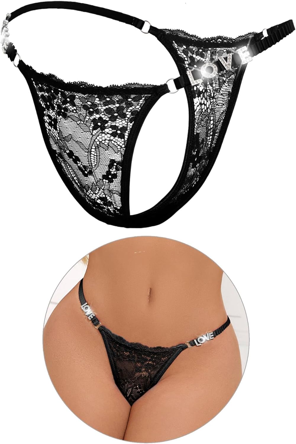 ohyeah G-String Thongs for Women Lace Thong Panties Micro Thong Low Waist Cheeky Underwear T-Back Love Diamonds Tangas