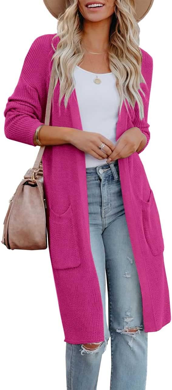 Amarmia Womens Long Sleeve Open Front Cardigan Sweater Lightweight Knit Casual Loose Fit Sweaters Outerwear with Pockets