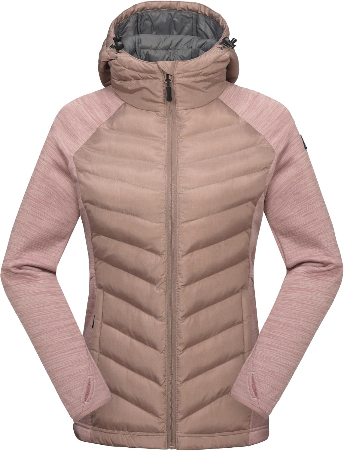 Mapamyumco Women's Insulated Hiking Jacket, Thermal Running Hybrid Jacket, Hooded Jacket Lightweight Breathable
