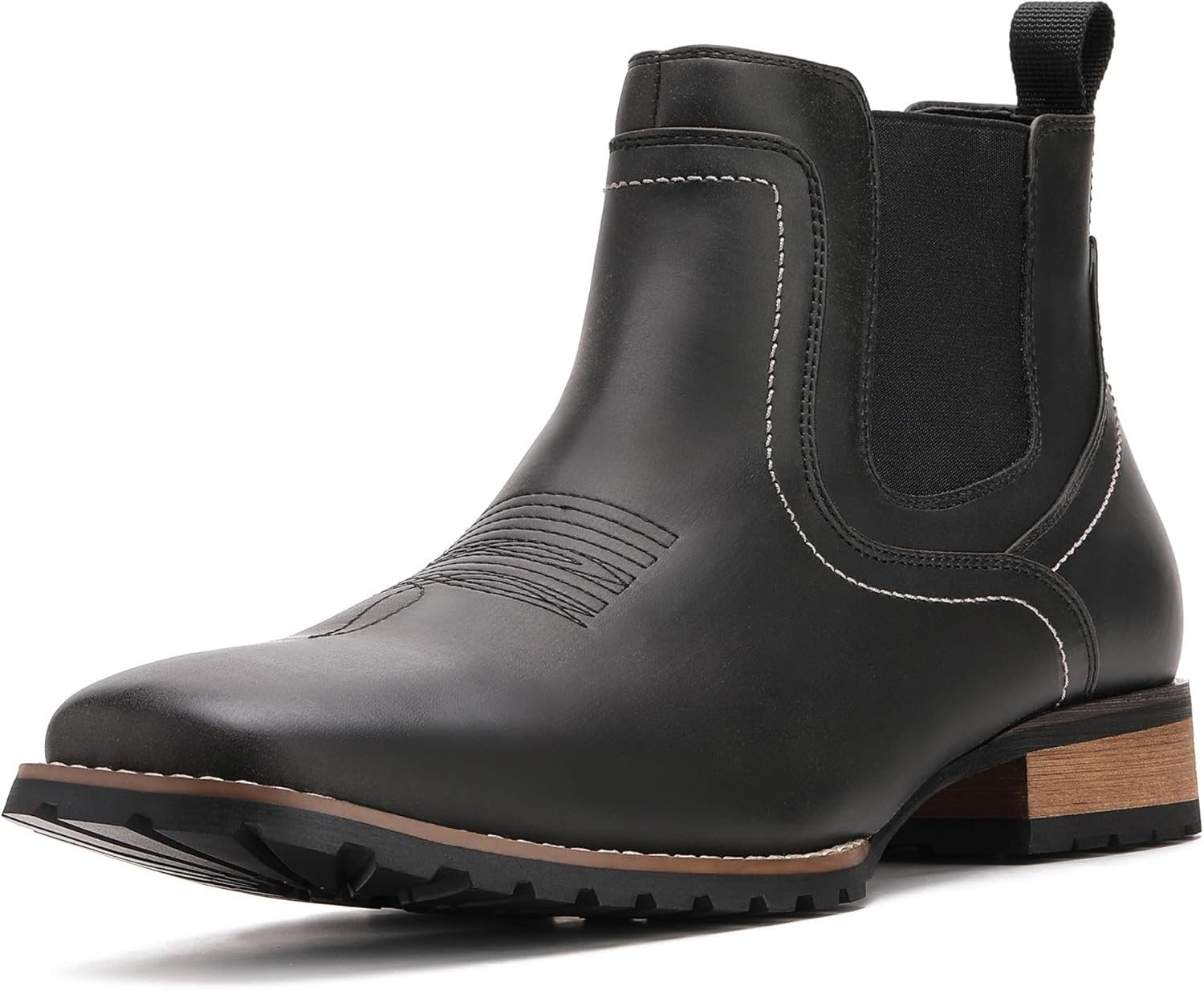 JASONSTAR Cowboy Boots for Men Square Toe Ankle Chelsea Boots Men's Western Short Casual Retro Stylish Boots