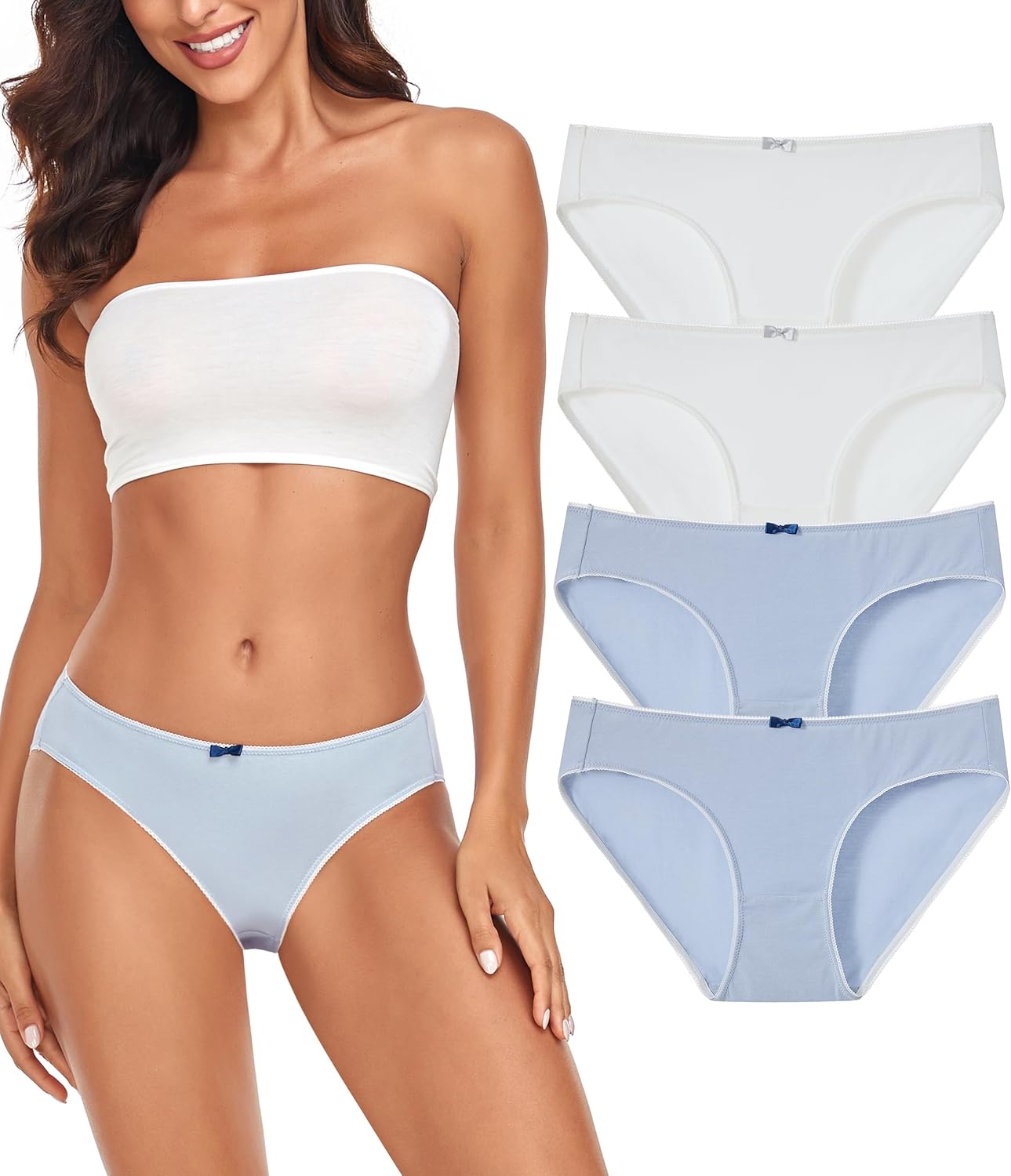 ANLIQI Women's Organic Cotton Underwear Pack Mid Rise Cotton Bikini Panties Soft Strench Breathable Ladies Hipster Undies