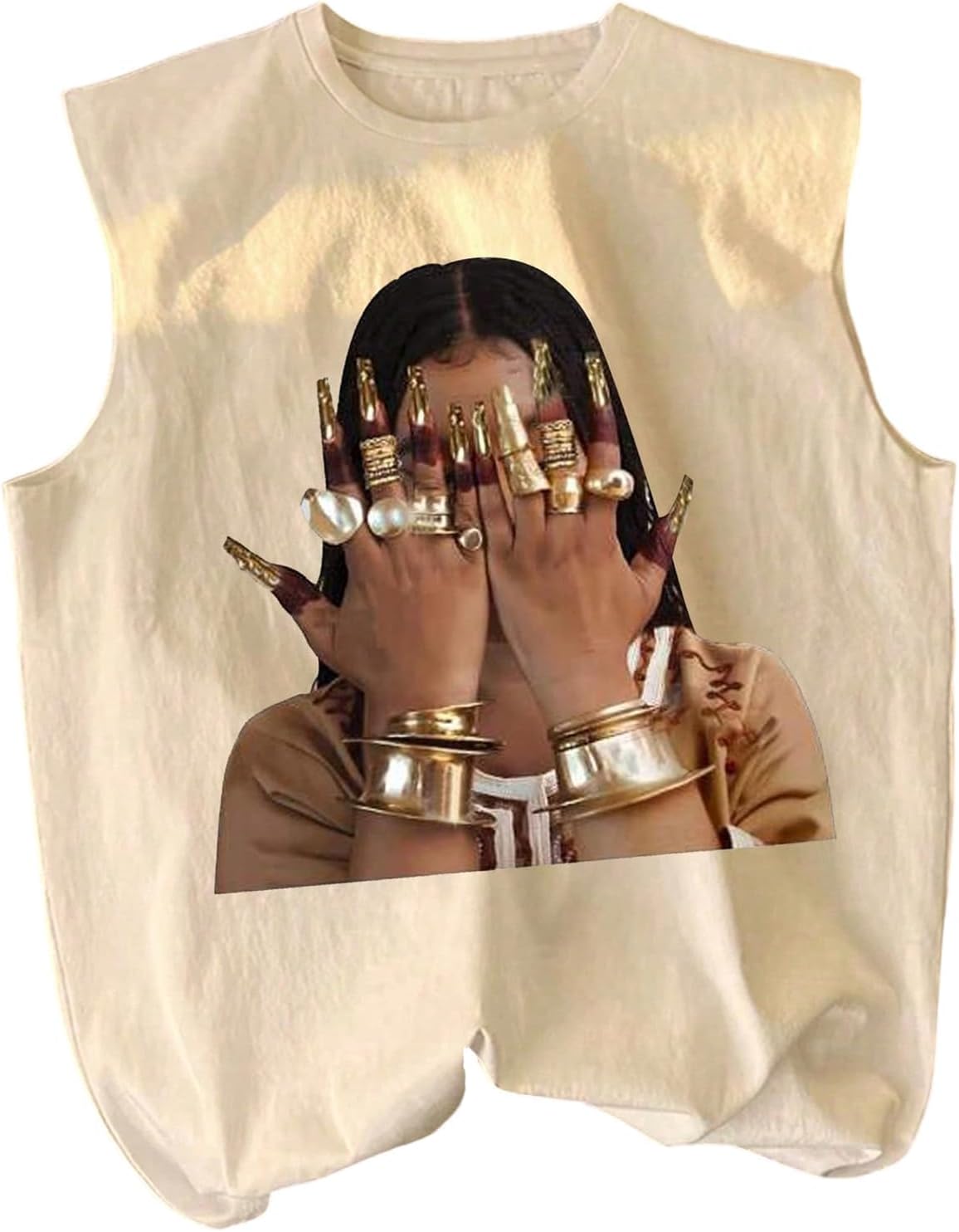 QJQ Men's Graphic Tank Top Crew Neck Sleeveless Sexy Clothes Hippop Summer Rapper Streetwear