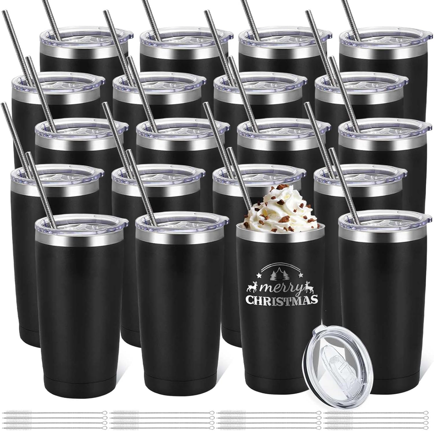 - Tumbler Set - You will receive 20 pieces stainless steel tumblers in black colors with 20 metal straws & straw brush