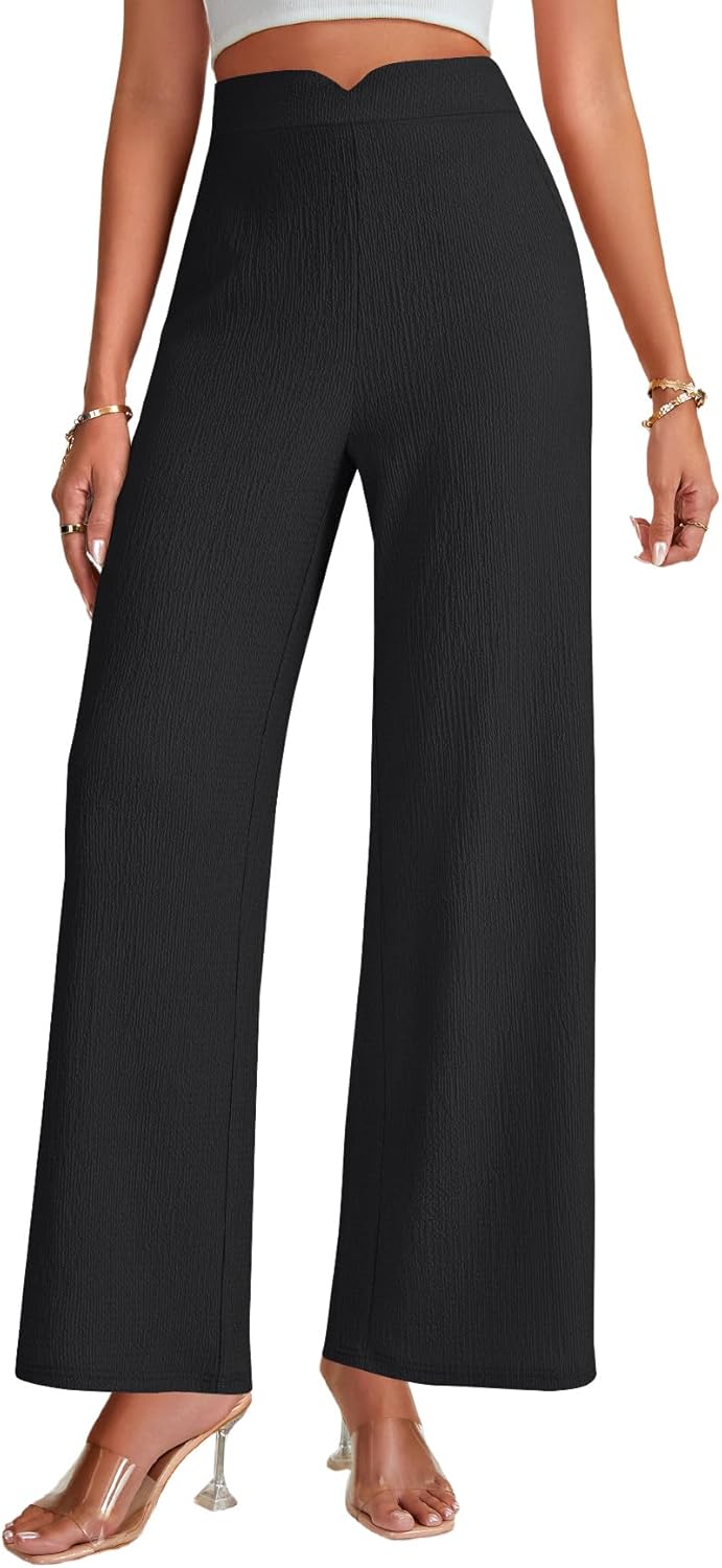 Vrtige Women's Textured Elastic High Waist Loose Classic Casual Wide Leg Pants