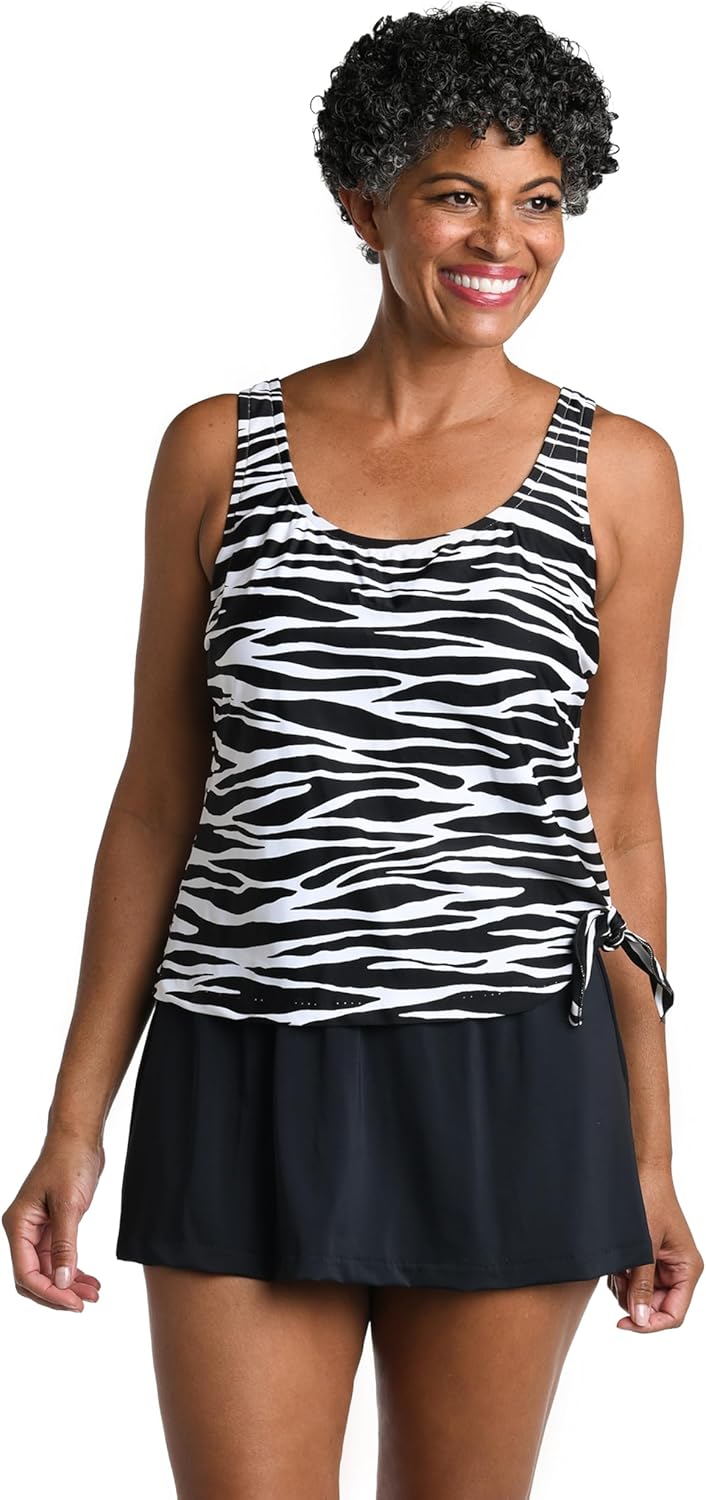 Maxine of Hollywood Womens Side Tie Scoop Neck Banded Tankini Swimsuit Top
