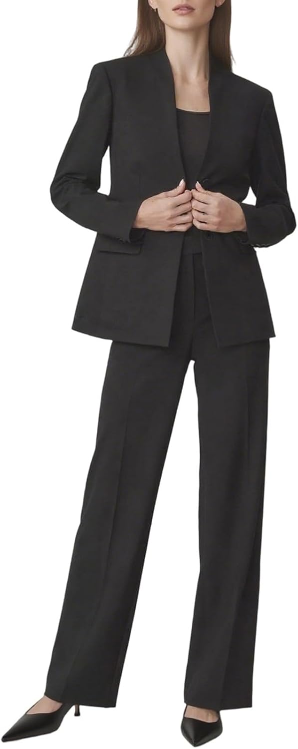 Women's 2 Piece Suits Business Casual Outfits Straight Wide Leg Pants Suits Profess...
