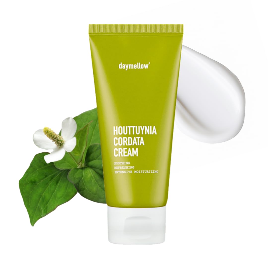 daymellow Houttuynia Cordata Real Soothing Cream 2.82fl.oz/80ml, Face Moisturizer, Heartleaf, Centella, Panthenol, Skin Barrier Repair, Acne, Soothes Redness Facial Cream Korean Skincare