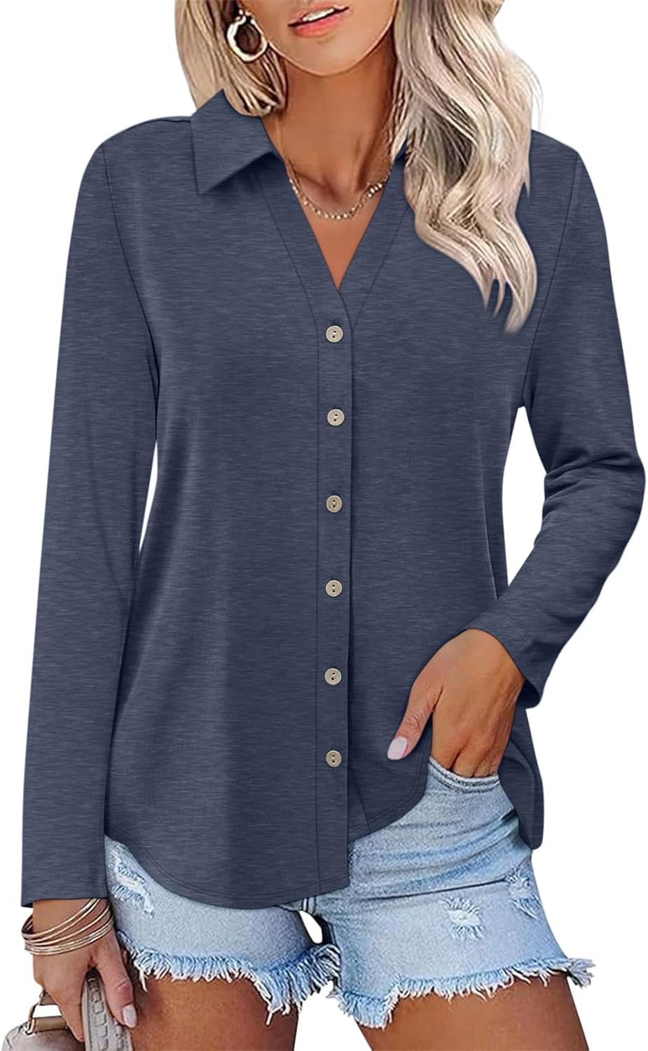 Womens Long Sleeve Tops Button Down Shirts Dressy Casual Fall Tops Trendy Tunic Tops