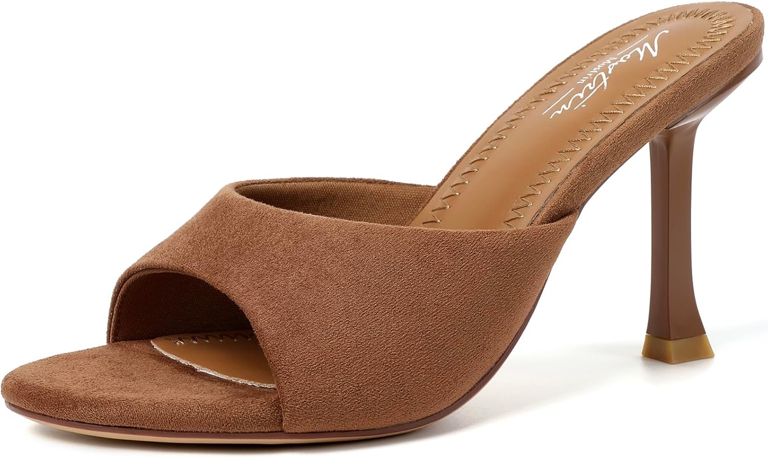 Mostrin Kitten Heels for Women Round Toe Heels With Bow Vintage Mules Sexy Slip on Stiletto Backless Sandals for Party Daily