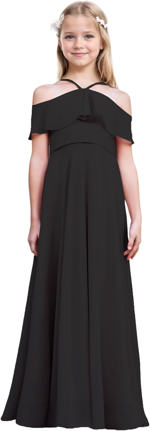 Junior Bridesmaid Dresses Flower Girl Dress Chiffon Maxi Sleeveless A-line for Wedding Teen Girls Party Gowns