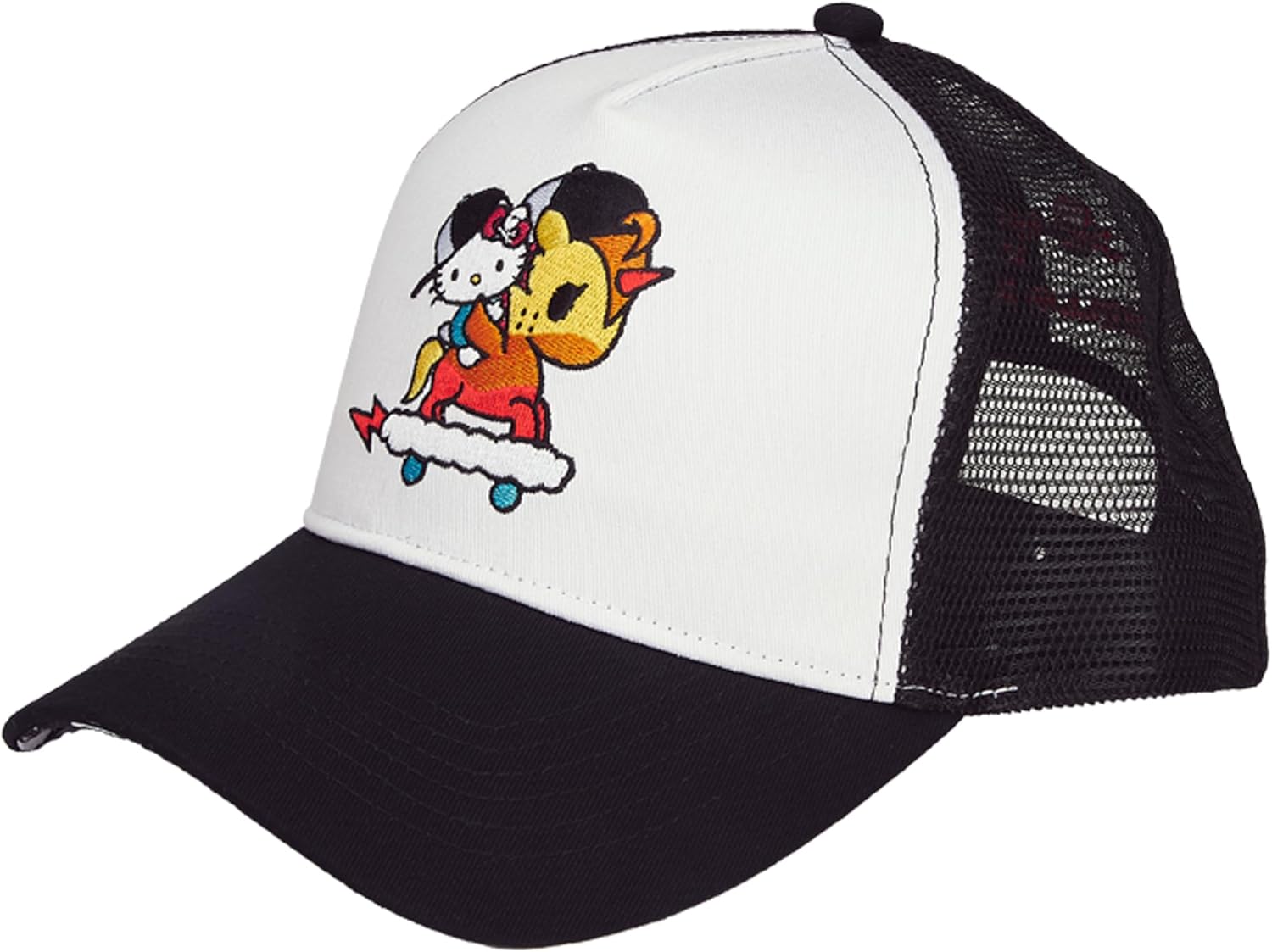 Tokidoki - Hello Kitty Skater Trucker Hat, Snapback Hat with Embroidered Graphic, Women's Cap, 100% Polly Twill, One Size White