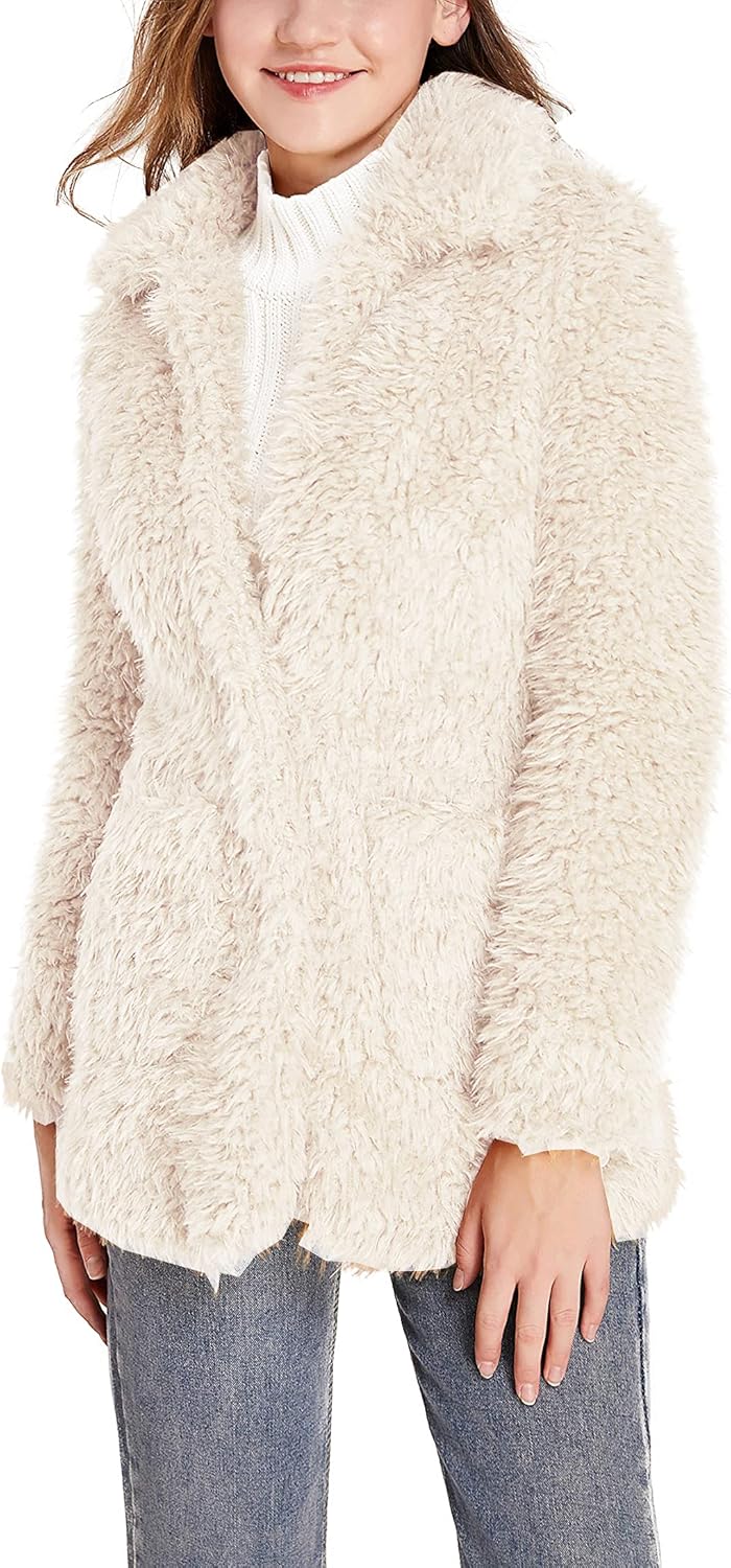 SUGAR POISON Elegant Faux Fur Coat Women 2022 Autumn Winter Warm Open Front Jacket Cardigan Overcoat Casual Outerwear