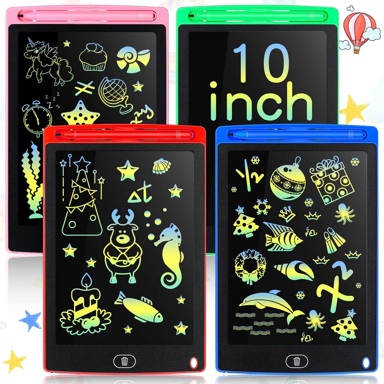 4 Pieces 10 Inch LCD Writing Tablet Doodle Board Electronic Toy Colorful Screen Doodle Drawing Pad for Kids Erasable Reusable Drawing Tablets Educational Learning Toy Christmas Gift(Black Frame)