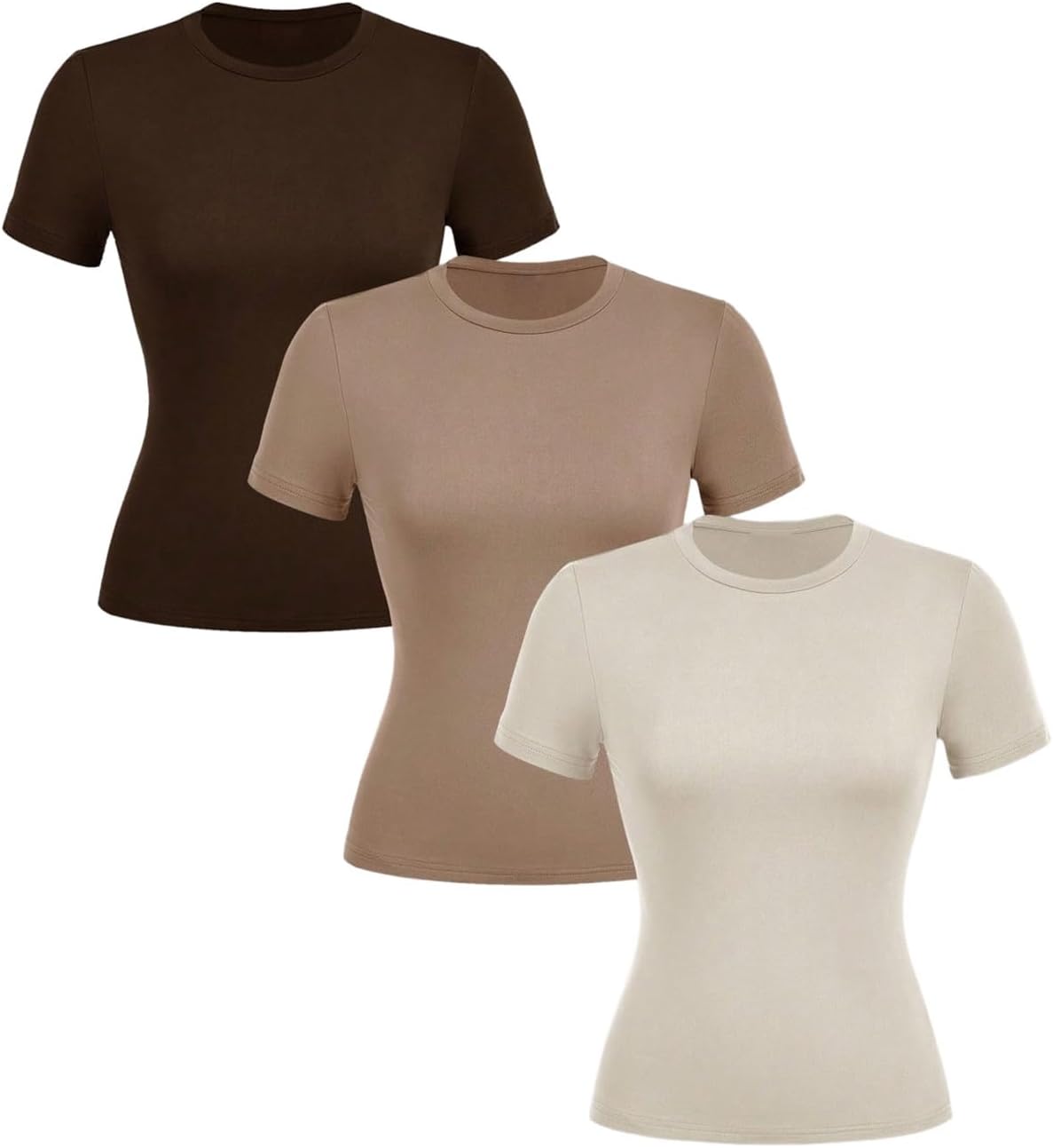 SOLY HUX Women's Crew Neck T Shirts 3 Packs Short Sleeve Tops Slim Fitted Casual Summer Tees