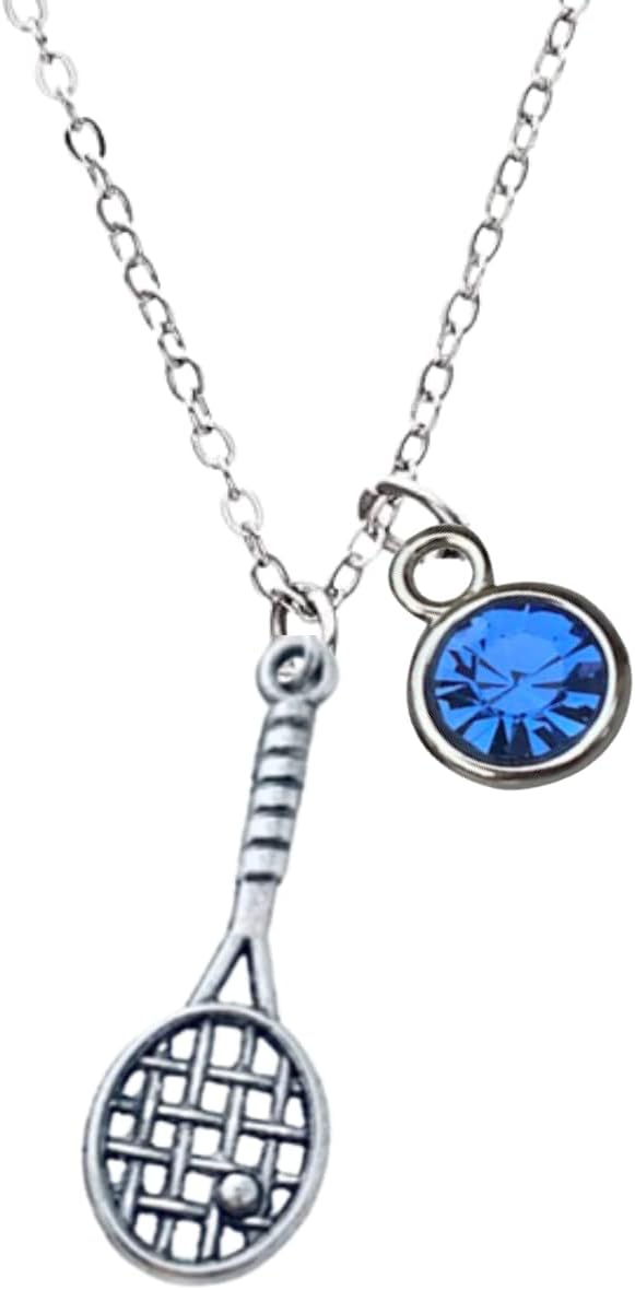 Personalized Tennis Racket Birthstone Necklace, Custom Tennis Player Jewelry - Tennis Necklace For Women, Teens & Girls