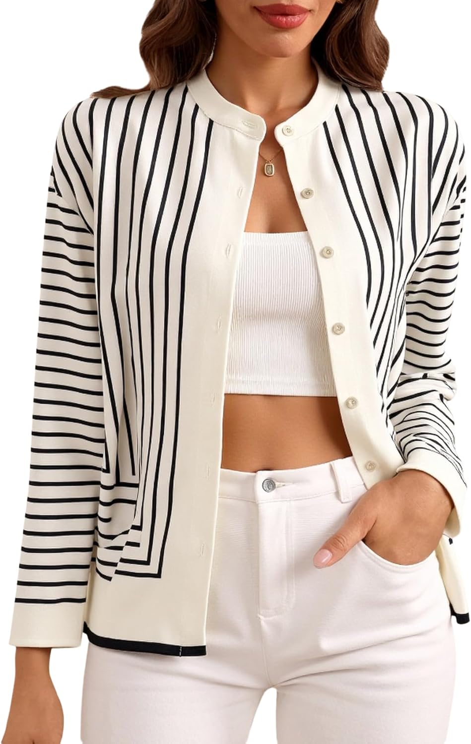 Women's Striped Mock Neck Shirt Button Down Long Sleeve Business Casual Blouses