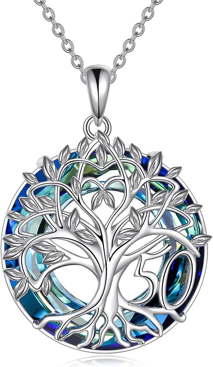 16th 18th 30th 40th 50th 60th 70th 80th 90th 100th Birthday Gifts Necklace for Women Sterling Silver Tree of Life Necklace with Blue Crystal Mothers Day Christmas Jewelry Gifts for Mother Women Wife